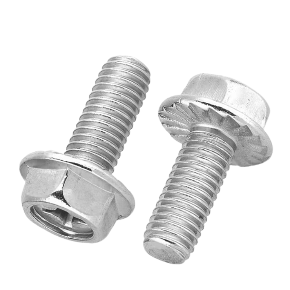 As per DIN 6921 / EN 1665 / ANSI standards, available in all sizes starting from M3 to M16, with grades 4.6, 5.6, 8.8, 10.9 and 12.9. Can be made with serration.